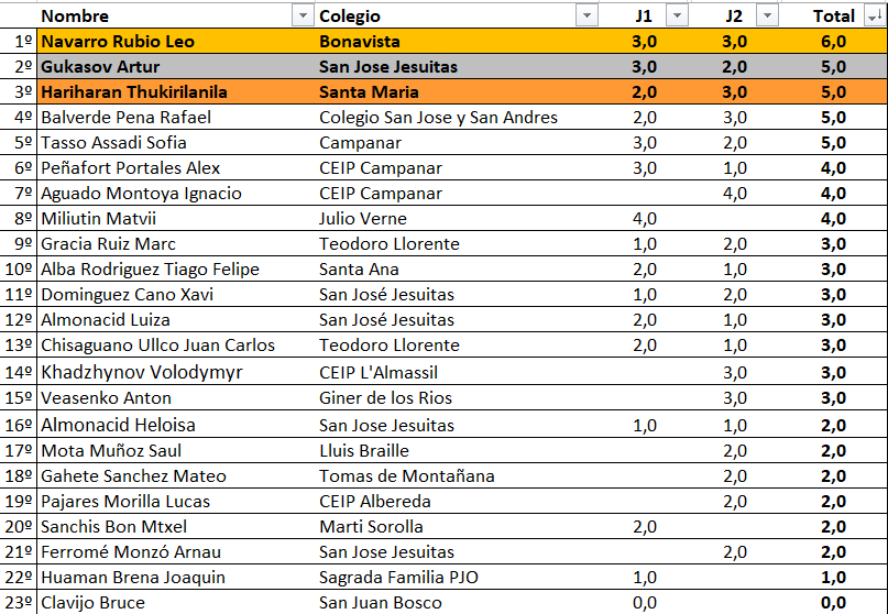 Todos los jugadores jugaron las 4 rondas del torneo y se fueron a casa con una medalla como recuerdo de su participación.