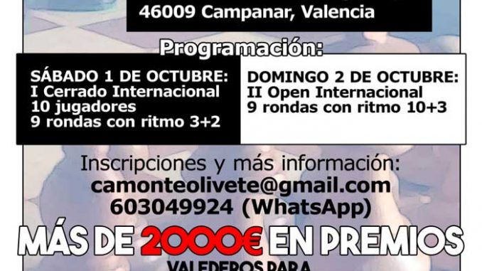BASES Inscritos LOCAL DE JUEGO: Poliesportiu Benimaclet Calle Daniel Balaciart S/N (València) SISTEMA Y RITMO DE JUEGO Suizo a 7 rondas. El ritmo de […]
