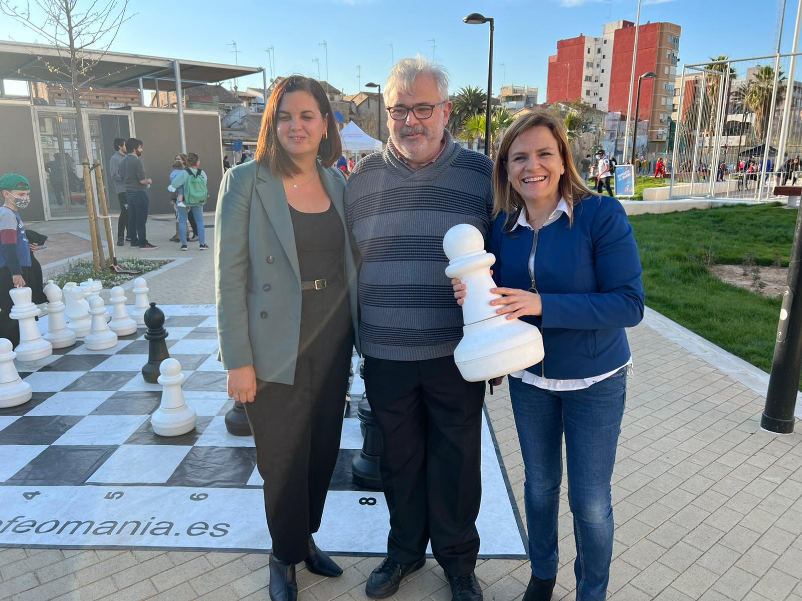 Basilio López Mateo con Sandra Gómez, Vicealcaldesa de València, y Pilar Bernabé concejala de Deportes de València, está tarde en la inauguración de un nuevo espacio deportivo en la calle Doctor Lluch, una intervención de urbanismo innovador, que crea una plaza deportiva en lugar de un espacio cerrado.