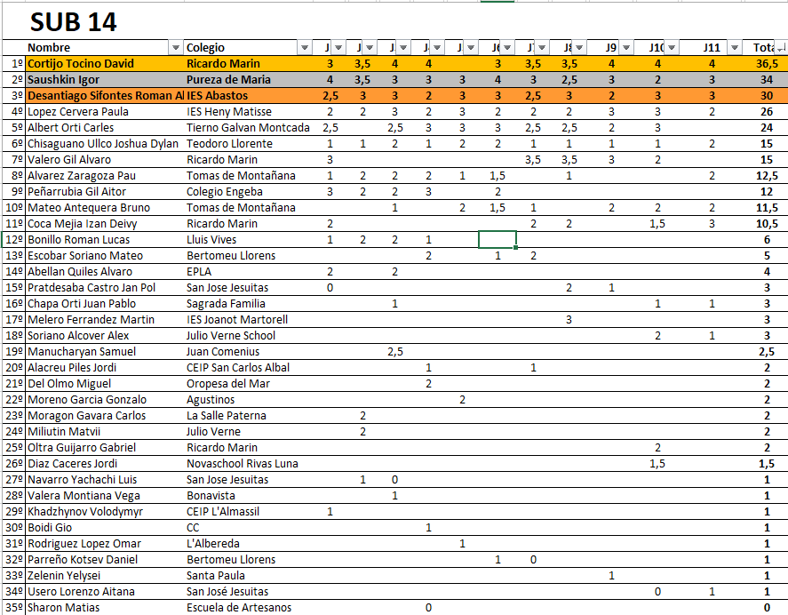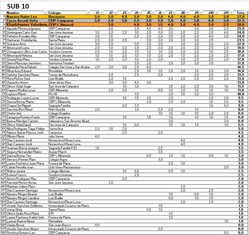 Clasificación J10: Sub 10 | Sub 14 | Galería