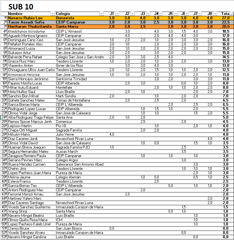 Clasificación General: Sub 10 | Sub 14