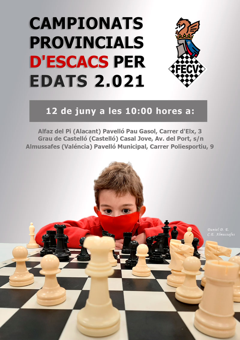 Convocado el Campeonato Provincial de Ajedrez por edades de la Comunidad Valenciana 2020. Se jugarán en la población de Almussafes , provincia de València,  el 12 de junio.