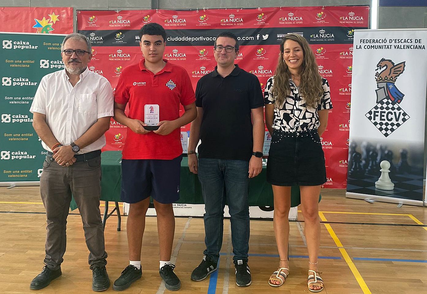 Rayan Romero tuvo un par de resultados meritorios, pero algún pinchazo en la primera parte le dejó, finalmente, en sus números, pero suficiente para conseguir el premio en metálico al mejor jugador de menos de 1800 FIDE. ¡Enhorabuena!